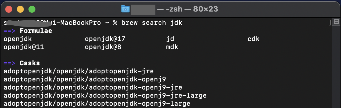 * brew search jdk 과 같이 패키지를 검색하면, 기본 저장소(Formulae)와 casks로 나뉘어서 보이는 것을 확인할 수 있다.