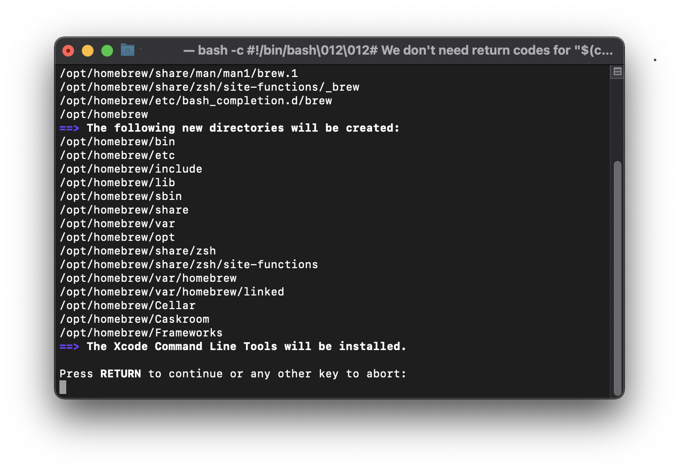 두 명령어를 복사해서 붙여 넣고 엔터를 누르게 되면 brew 명령어를 사용할 수 있게 된다.