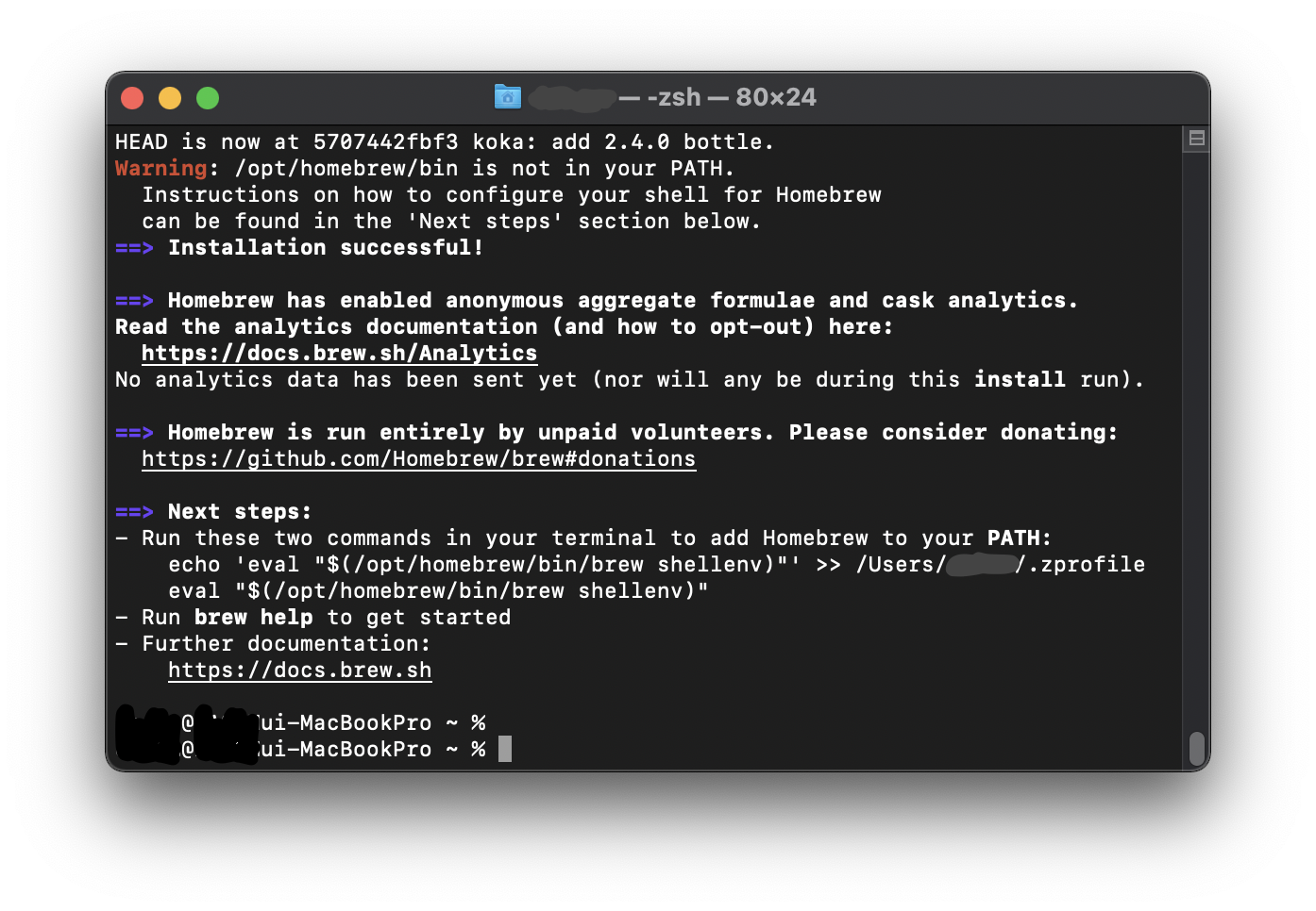 echo 'eval "$(/opt/homebrew/bin/brew shellenv)"' >> /Users/{username}/.zprofile