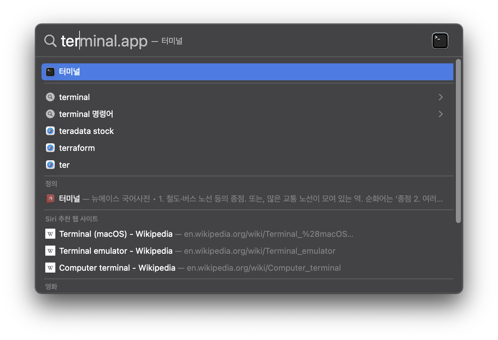 그리고 터미널 창에 해당 명령어를 붙여 넣고 엔터를 치면 끝!